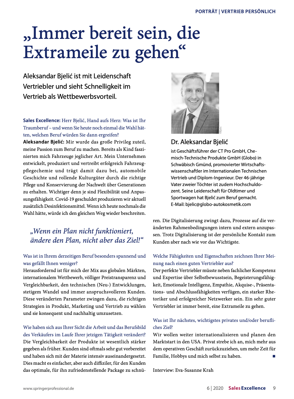Neben unserer Präsenz in renommierten Fachmedien wie Sales Excellence geben wir in verschiedenen Veröffentlichungen Einblicke in aktuelle Entwicklungen, Projekte und strategische Themen bei Bjelić & Barth. Die folgenden Artikel zeigen, wie wir Innovation, Schnelligkeit und Praxisnähe im Unternehmensalltag leben.