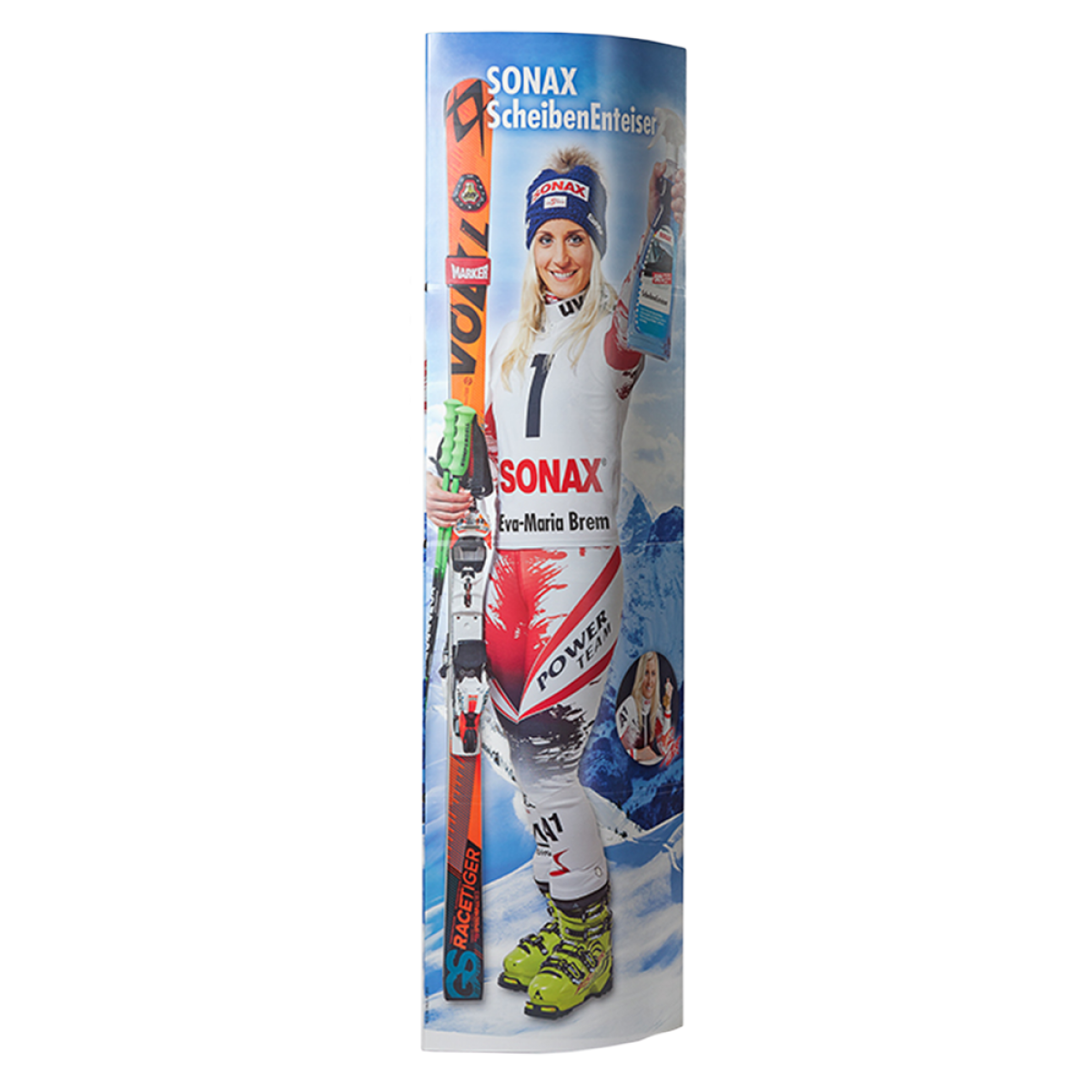 Im gefalteten Zustand bieten die Ellipsen-Displays ein geringes Transportmaß, durch das sie wiederum einfach und kostengünstig verschickt werden können.